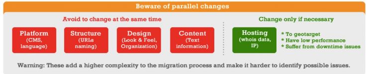 One thing most SEOs will tell you about domain migration is that you shouldn’t make a lot of big changes at once. For example, if you’re switching to a new domain, just switch domains; don’t try to change anything else at the same time. If you’re refreshing your design, just do that; don’t try to change your content or URL structure at the same time. And definitely, definitely don’t change anything else if you’re changing your top-level domain (TLD).