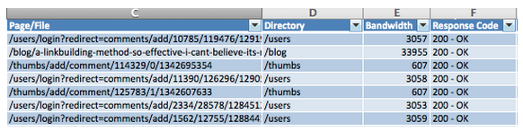 The first step is to import your file into your parsing software. Most web log parsers will accept various formats and have a simple wizard to guide you through the import. With the first pass of the analysis, I like to see all the data and do not apply any filters. At this point, you can do one of two things: prep the data in the parse and export for analysis in Excel, or do the majority of the analysis in the parser itself. I like doing the analysis in Excel in order to create a model for trending (I’ll get into this in the follow-up post). If you want to do a quick analysis of your logs, using the parser software is a good option.