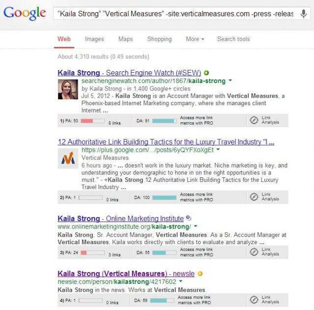 #10 Watch out for common references of your brand name. For a company name such as Vertical Measures, there are common mentions of vertically measuring items. In order to avoid running across these I will take out phrases from my results such as –carpentry. Watch out for brand names that also have common usage so they don’t “junk up” your SERPs. Another example is that popular individuals' last names might be the same as your brand name. You’ll want to take out mentions of their first name to avoid issues.