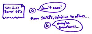 Well, this is sort of an interesting one. Let's say you have a time on site of two minutes, and you look at your industry averages, your benchmarks, maybe via Google Analytics if you've opted in to sharing there, and you see that your industry benchmarks are actually lower than average. Is that going to hurt you in Google web search? Not necessarily. It could be the case that those visitors are coming from elsewhere. It could be the case that you are actually serving up a faster-loading site and you're getting people to the information that they need more quickly, and so their time on site is slightly lower or maybe even their bounce rate is higher.