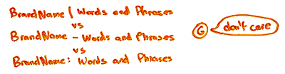 Now, maybe you've found that one of these characters has a slightly better click-through rate and preference than another one. If you've found that, great. We have not seen one broadly on the web. Some people will say they particularly like the pipe over the hyphen. I don't think it matters too much. I think it's up to you.