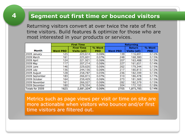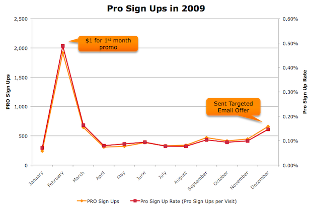For us at SEOmoz, 2009 was an outstanding traffic year. We're certainly proud of the fact that over 100,000 more visitors will visit the site this January than last January, but we are also well aware of the fact that more traffic does not equate to more revenue. So for this reason, we will continue to place our efforts on better converting the visitors we already have and better retaining our existing PRO members.
