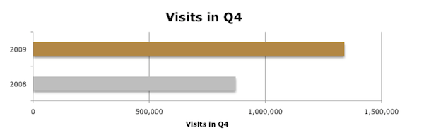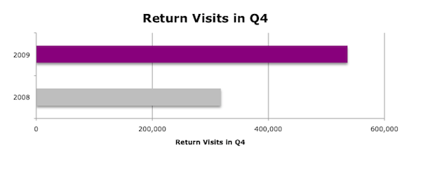 Return visits show a fairly similar trend, with a slight drop in Q4 (though, as you'll see below, it was a massive growth from 2008).