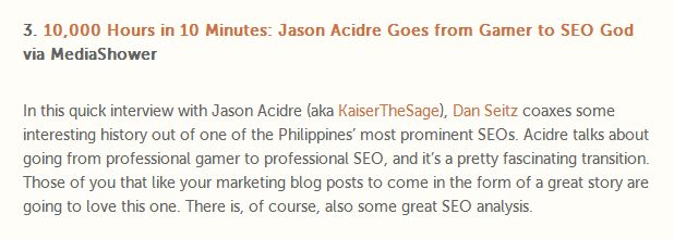 If you're looking for more tips on link building, you can check out my blog Kaiserthesage and you can also follow me on Twitter @jasonacidre.