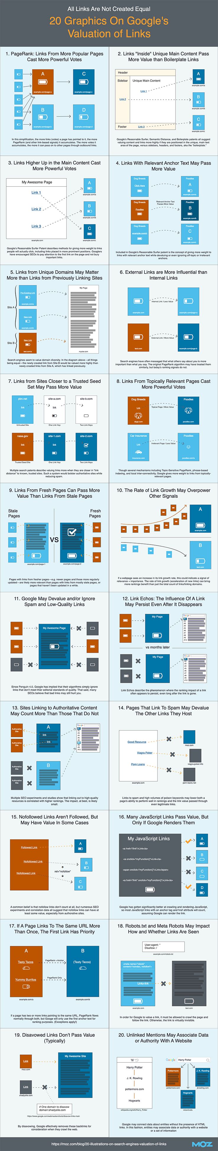 In this post, we'll walk you through 20 principles of link valuation that have been observed and tested by SEOs. In some cases, they have been confirmed by Google, while others have been patented. Please note that these are not hard and fast rules, but principles that interplay with one another. A burst of fresh link can often outweigh powerful links, spam links can blunt the effect of fresh links, etc.