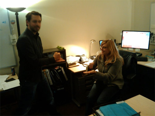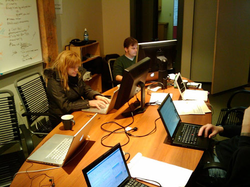 Mozzers hard at work in the conference room (and apparently freezing cold, too).