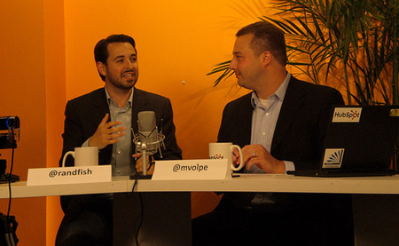 Rand on Hubspot TV with Mike Volpe in Hubspot's Boston offices (Rand: "My grandparents asked what channel I was going to be on.")