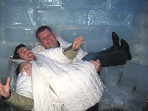 Rand is subsumed by Kristjan Mar Hauksson's (of Nordic eMarketing) gigantic Viking hands in an Icelandic ice bar in the capital, Reykjavik following RIMC 2009