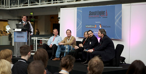 On a panel at SES London chaired by Mike Grehan (SES), Rand pictured with Brett Tabke (WebmasterWorld), Chris Sherman (Third Door Media), Jill Whalen (HighRankings) and Kevin Ryan (WebVisible)