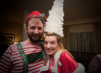SEOmoz's Chas Williams and Sarah Bird won most festive attire at our holiday event.