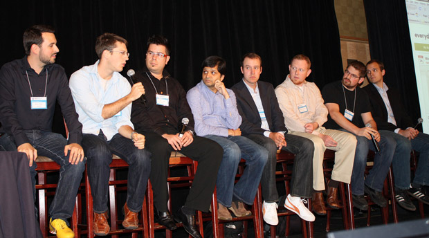 Rand at Searchfest Portland with Anne Kennedy (BeyondInk) and Adam Audette (Audette Media) speaking about SEOmoz's history & future (apparently I was a bit more animated than most other folks) :-)