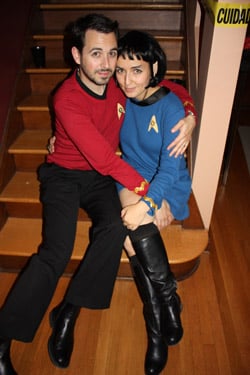 Mystery Guest homemade retro Star Trek outfits for Halloween this year (and got a wig + Vulcan ears to complete her ensemble)