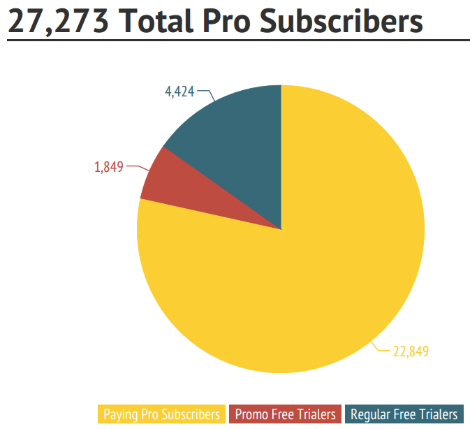 At the end of 2014, we reported a little over 27,000 Pro users. When billing system issues hit in Q1 2015, we discovered some weird under- and over-reporting, so the number of subscribers was adjusted down by about ~450 after we scrubbed a bunch of inactive accounts out of the database. We expect accounts to stabilize and be more reliable now that we've fixed those issues.