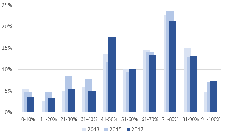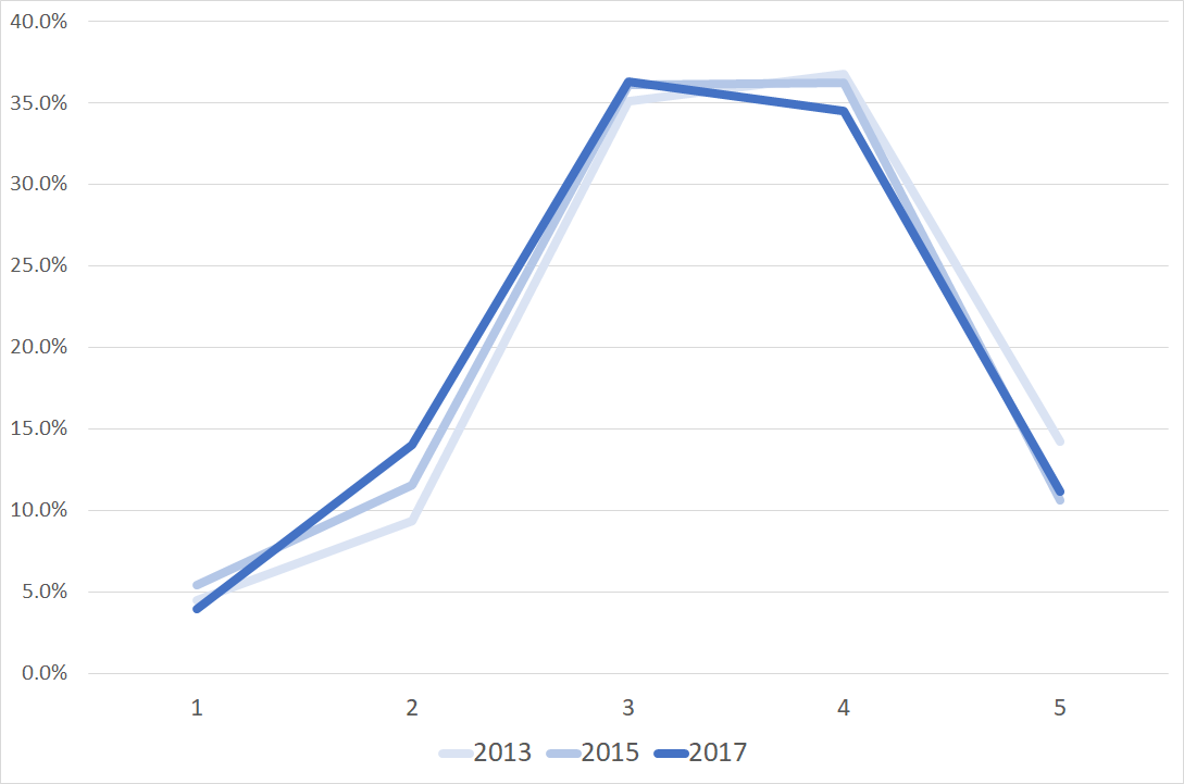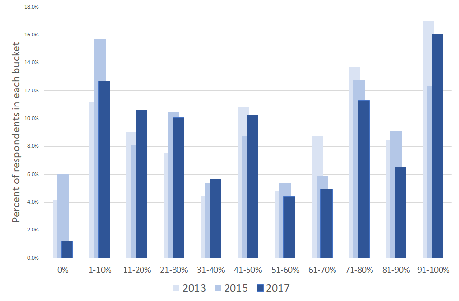 The similarity between this year's graph for this question and those from 2015 and 2013 is simply astonishing: