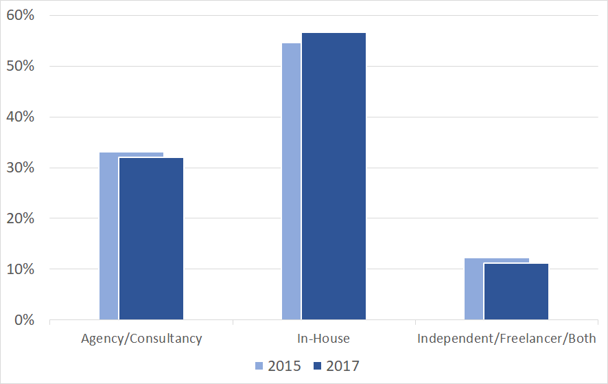 A slight majority of our readers still work in-house for their own companies, and about a third still work on SEO for their company's clients.