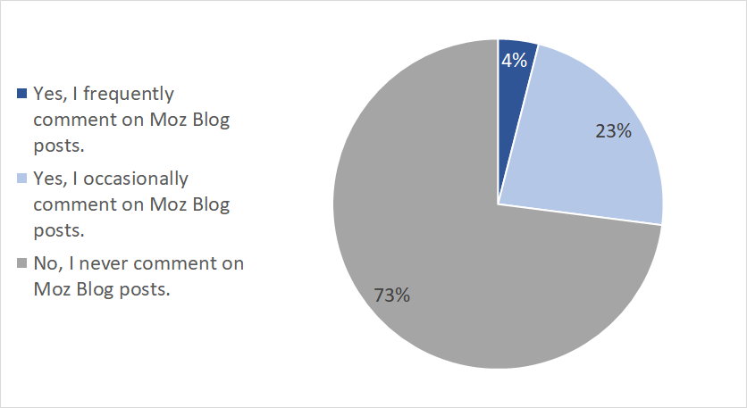This was another new question this year. Despite so many sites are removing comment sections from their blogs, we've always believed in their value. Sometimes the discussions we see in comments end up being the most helpful part of the posts, and we value our community too much to keep that from happening. So, we were happy to see a full quarter of respondents have participated in comments: