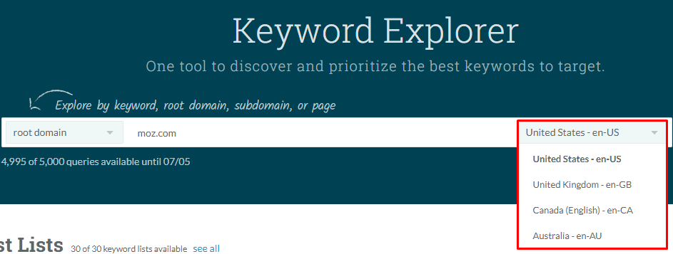 We're very excited to announce that, as of just last week, international data has been added to the Keywords by Site feature of Keyword Explorer! This will now allow Moz Pro customers to see which keywords they rank for and assess their visibility across millions of SERPs, now encompassing the US, Canada, the United Kingdom, and Australia! Keywords by Site is a newer feature within Keyword Explorer, added just last October to show which and how many keywords any domain, subdomain, or page ranks for.