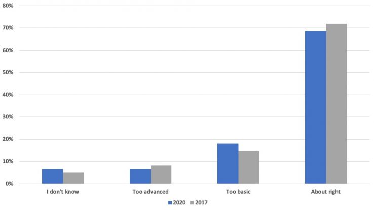 Given the breadth of topics on the blog and the wide range of reader skill levels, we're happy to see that, for the most part, readers find our posts just about right on a scale of too easy to too advanced.