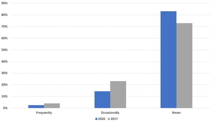 Given the multiple off-blog distribution methods and frequency of prompts to take this year's survey, we saw a sharp increase in "non-reader" responses from 1% in 2017 to 6% in 2020. That said, it's interesting that Moz email and social media subscribers who weren't Moz Blog readers felt motivated to take a survey entitled "Moz Blog Reader Survey". We've taken note of the topics requested from those respondents, in the hopes of encouraging more engagement with the blog.
