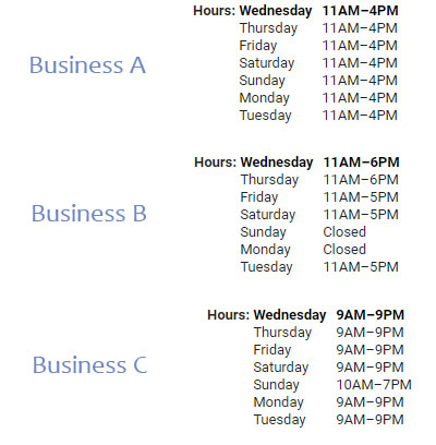 So, here’s the task: Do a quick audit of the hours posted on the GBPs of your client’s direct competitors. For example, I found three craft shops in one small city with these hours: