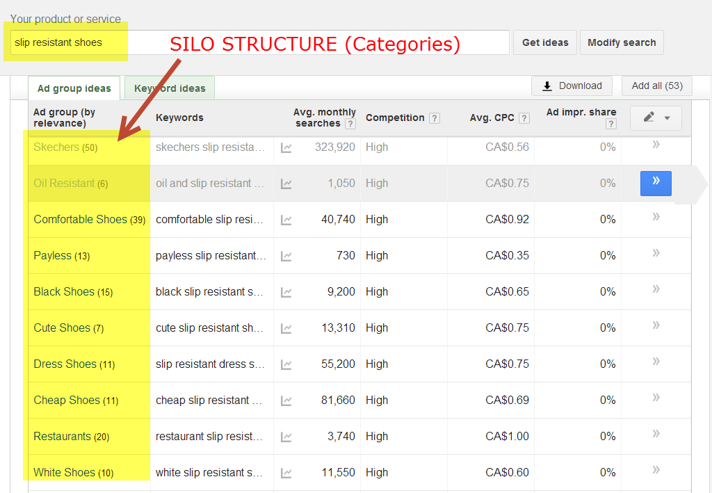 If I'm going to build a slip resistant shoes niche website, I'm also going to create categories/articles on comfortable slip resistant shoes, black slip resistant shoes, restaurant slip resistant shoes, etc.