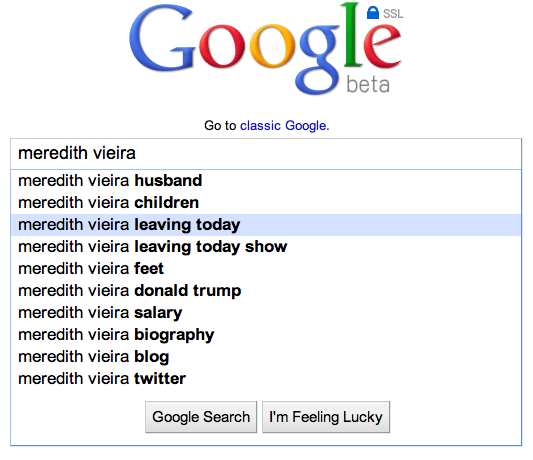 Wait, what were those suggested searches? I just spewed Theraflu onto the Mac. Who am I kidding, those queries aren't helpful at all! In fact many are horribly offensive. If you want to replicate those searches today, you might not find them because Google has since refined their autocomplete algorithm and in some cases perhaps applied an offensive filter. If I lost anyone with that last sentence, take a minute to head over to Search Engine Land and read Danny Sullivan's enormous post on how Google's autocomplete suggestions work. Or you can read the 60 second overview here: