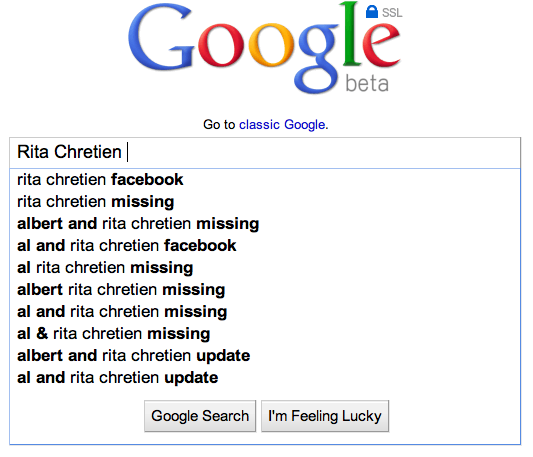 - MISSPELLINGS & VARIATIONS - Google will display common misspellings. This can be seen in recent news on the discovery of [Rita Chretien] and her missing husband: