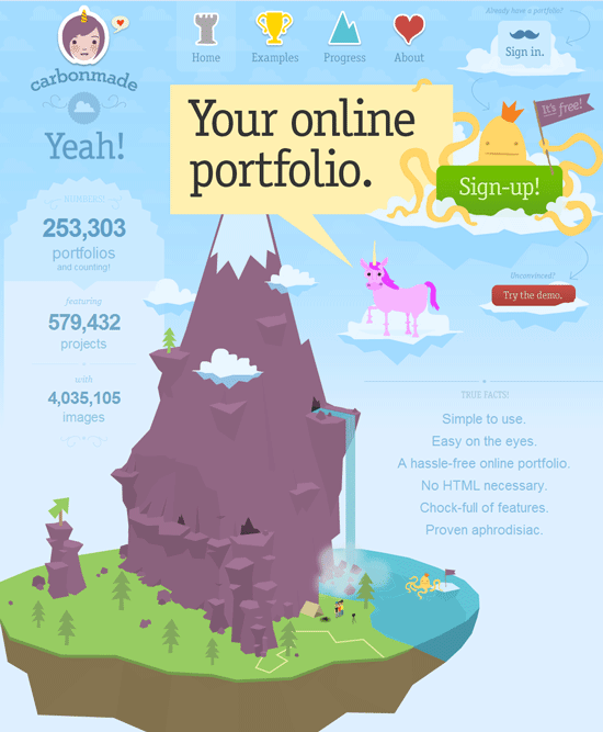 It used to be that I'd see a website built around illustrations and artistry and shake my head in sadness, knowing that the beauty of the UI was unlikely to be experienced by anyone except those coming via type-in. Today, with the amazing progress of CSS, sites like Carbon Made can have their design cake and eat their SEO, too.