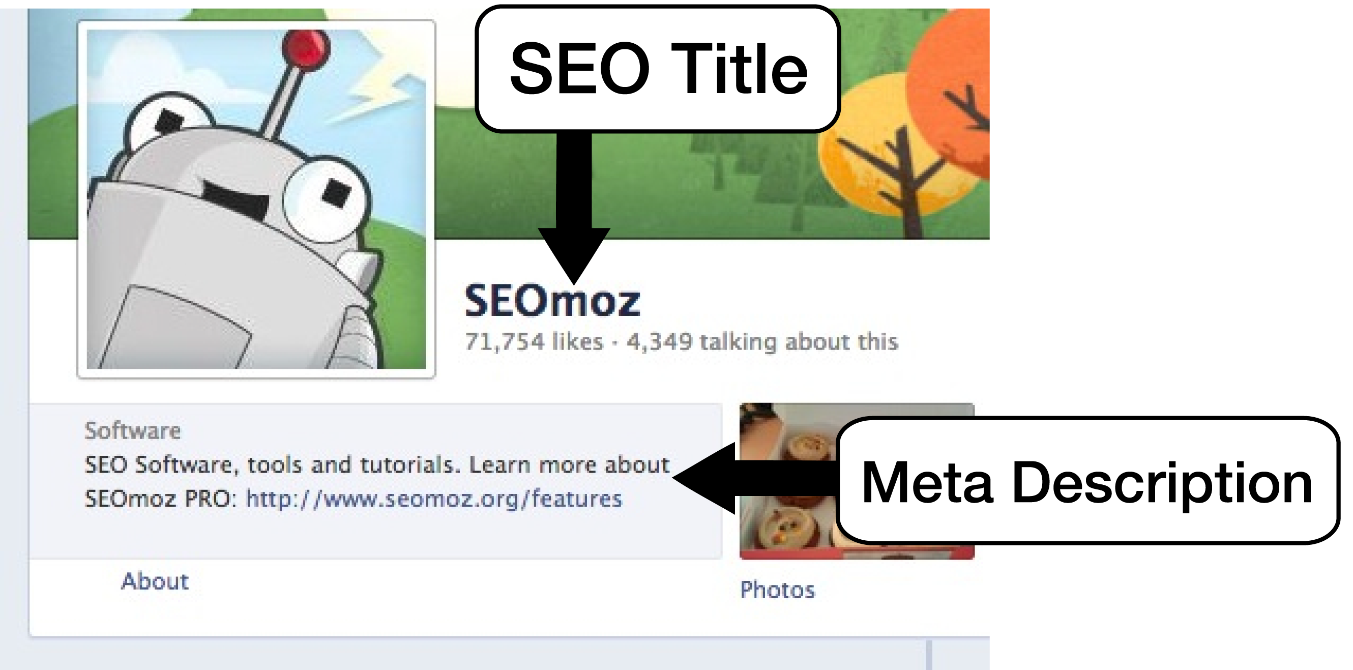 Just like traditional websites, keyword optimization is the most fundamental form of on-site SEO. The most important pieces to pay attention to are the About section, Mission, and Company Description, since these areas are actually pulled from your fan page as SEO elements.