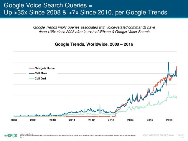 KPCB's 2016 Trends report suggests the growth in voice search is higher, using implied Google Trends data (which, as those of us in SEO know, can be a dangerous, messy assumption). Clickstream data sampling and sources that track referrals (like SimilarWeb Pro) are likely better ways to measure the impact of cannibalization, and hopefully Google themselves (or third-party data sources with direct access) will report on the relative growth of voice to validate this.