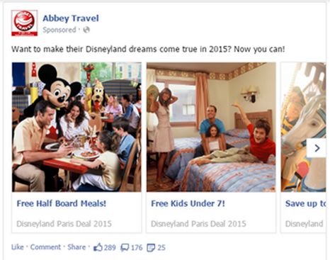 The three examples outlined so far are for travel companies. Travel is a great fit for Facebook as it sits naturally in the Facebook feed, my Facebook feed is full of envy-inducing friends' holiday pictures right now. Another interesting reason why travel is a great fit for Facebook ads is because typically there are multiple parties to a travel purchase. What happened here is the comments section actually became a very visible and measurable forum for discussion between friends and family before becoming a stampede inducing medium of enquiry.