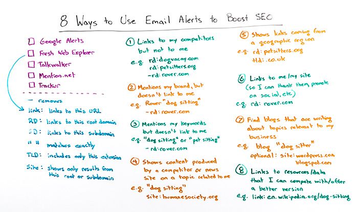 Link building is nowhere near dead, and some of the best link opportunities can be discovered by setting up email alerts for various things that are published on the web. In today's Whiteboard Friday, Rand runs through eight specific types of alerts that you can implement today for improved SEO.