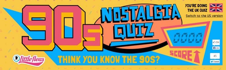 Pro Tip 2: Another way you can target content more broadly is geographically. Bingo site TwoLittleFleas has used a US/UK switch on their quiz to broaden their potential audience from 63m (UK population) to 377m (US and UK population).