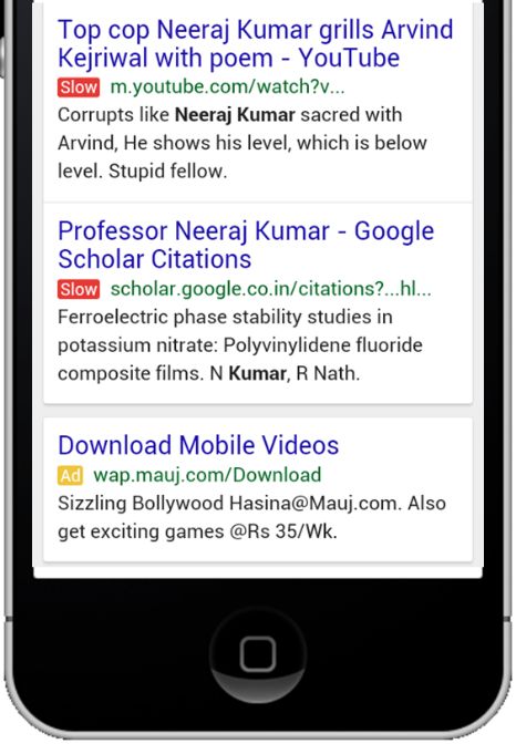 shown to the right, originally spotted in testing by Barry Schwartz. In fact, showing the "Slow" tag might make sense later in the game, after most webmasters have made the updates, and Google instead needs to create a more serious and impactful negative incentive for the stragglers. (This is Barry's image; we have not actually seen this one yet).