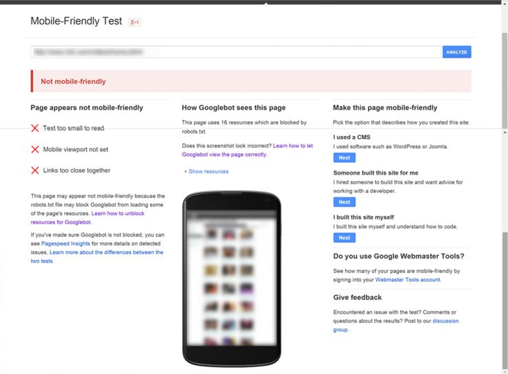 In terms of the Mobile-Friendly announcement, it is surprising that Google has not focused more on mobile page speed, minimizing redirects and avoiding mobile-only errors—their historical focus for mobile SEO. This could be because page speed does not matter as much in the evaluation of content if Google is getting most of its crawl information from feeds. Our guess is that things like page speed and load time will rebound in focus after 4/21. We also think mobile UX indicators that are currently showing at the bottom of the Google PageSpeed tool (at the bottom of the "mobile" tab) will play into the new mobile algorithm—we have actually witnessed Google testing their inclusion in the Mobile-Friendly tool already, as shown below, and of course, they were recently added to everyone's Webmaster Tools reports. It is possible that the current focus on CSS and JavaScript is to ensure that as many pages are in the new index as possible at launch.