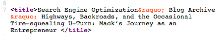 Your page title is probably one of the most important factors for on-page SEO. It used to be that you wanted to try to keep it to 70 characters. But now, Google may take the liberty of revising it so that it is more relevant to the query and could use your URL as the title instead of the actual coded page title. Bottom line: make sure your title is relevant to your content and keyword rich. I prefer to include personality in my titles, but sometimes that makes for some seriously long titles.