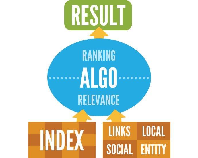 Of course, the algorithm has to do something, so we need inputs and outputs. In the case of search, the most fundamental input is Google's index of the worldwide web, and the output is search engine result pages (SERPs):