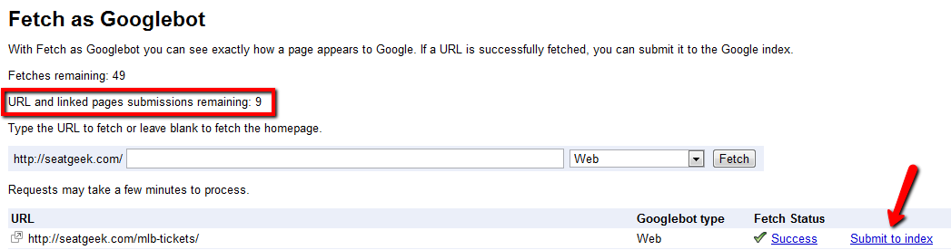 - Lastly, don't be too worried, just follow some of the tactics above and you should be back in the index with the same rankings (have your boss email me if they are giving you crap - chad@seatgeek.com)