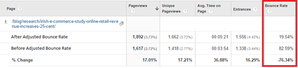 When we implemented Adjusted Bounce Rate on our own website, we were able to see that a lot of our blog posts which had previously had high bounce rates, had actually been really engaging to those who read them.