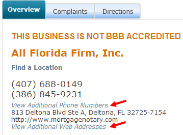 - Review the company BBB listing. Check out Phil Rozek's article on his BBB Hack for finding possible conflicting information. The long and the short of it is that the BBB.org business listings show additional reported phone numbers, business names, and addresses as shown in the example below from his website.
