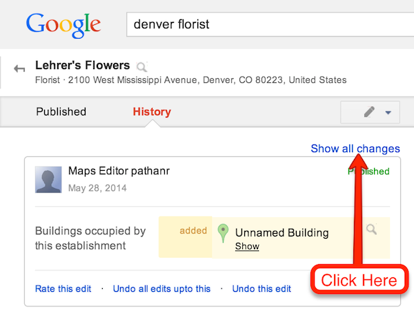 - Check Google Map Maker. By viewing the classic Google Map Maker, you can see the edit history of a business. This will tell you if a phone number or business name has been changed. To get this data simply pull up the Classic Map Maker, search for a business and then select the history tab. Once you're on the history click "Show All Changes" in the upper right corner of the listing as shown below: