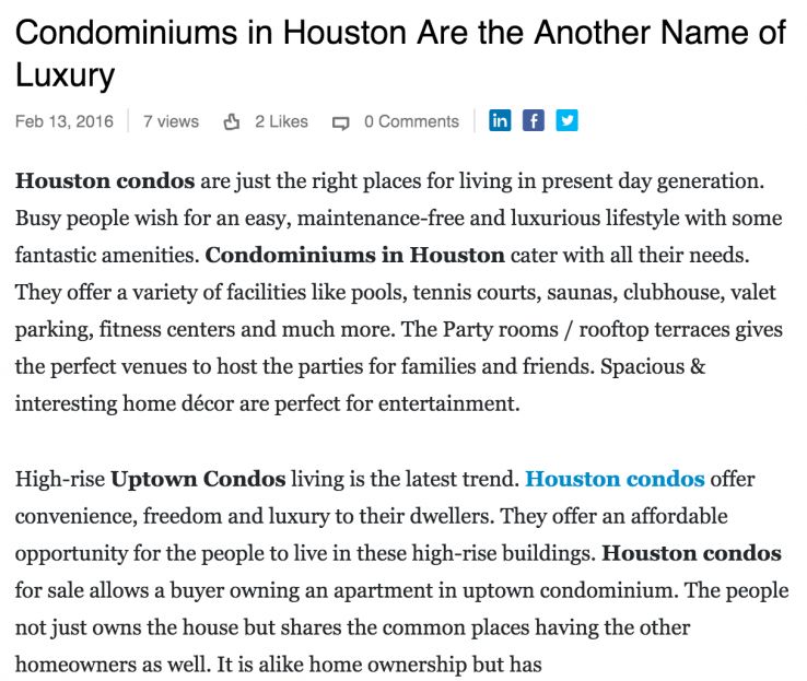 I get e-mails all the time from people offering "guest posts" or selling "guest post services" — and I know exactly what they have in mind. Almost every time, people who use the word "guest post" end up submitting 500 words of crap with a few links that have optimized anchor text. Don't be those people — their jobs consist of nothing but filling the Internet with spam.