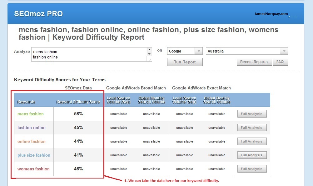 Step 3 - Adding In Some Keyword Difficulty Scores From SEOmoz!