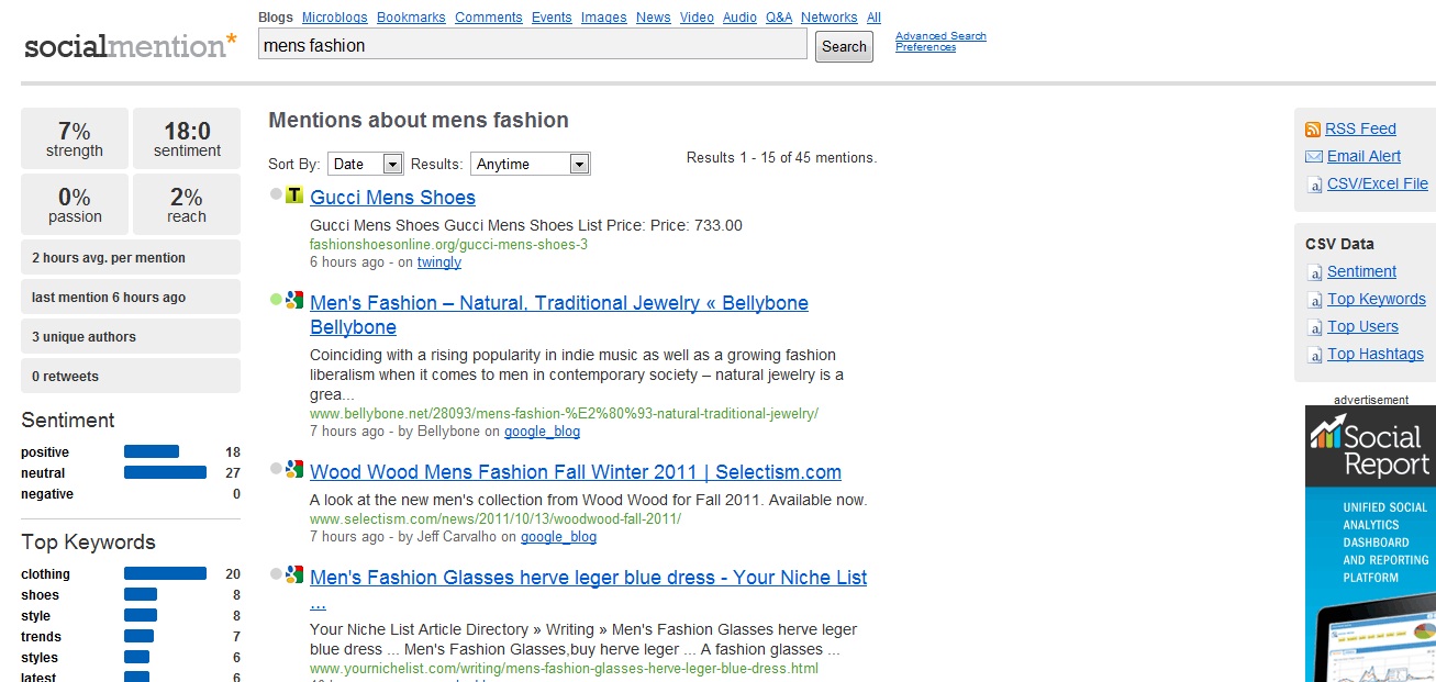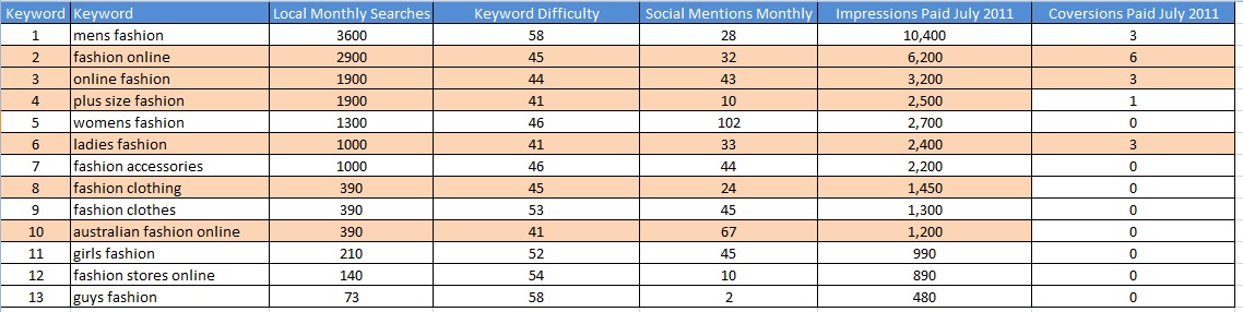Buzz metrics data was already tracking Australian related websites which we have used for the fashion niche. Data from Topsy and Social Mention is more focused on US data I have decided to use Buzzmetrics for my social data. If you are in the USA it would be advisable to check out Topsy and Social Mention or Radian 6. Once you have scanned all the websites you will be able to see mentions data per keyword be sure to refine your search data from social monitoring tools as it can easily become skewed out.
