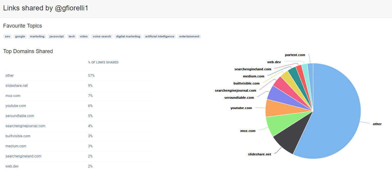 Another important thing to notice is the prominence of both YouTube and SlideShare. If you haven’t yet realized the importance and reach of these platforms, perhaps this is the proof you need. Video content and slide decks are highly shared in the SEO community by top influencers.