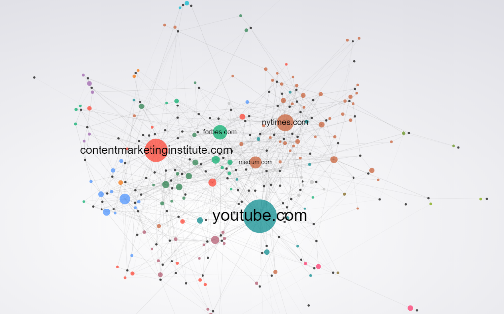 This process will be most valuable to you when you are new to an industry or are working within a new vertical or niche. Using the python code I linked and BuzzSumo’s fantastic API and data offers the opportunity to gain a deep visual understanding of the favorite places of industry thought leaders. This knowledge acts as a basis for strategic planning toward identifying top publishers with your own guest content.