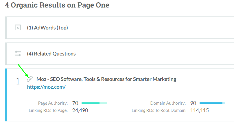 - Other keywords your competitor’s page is ranking for (Moz Keyword Explorer)