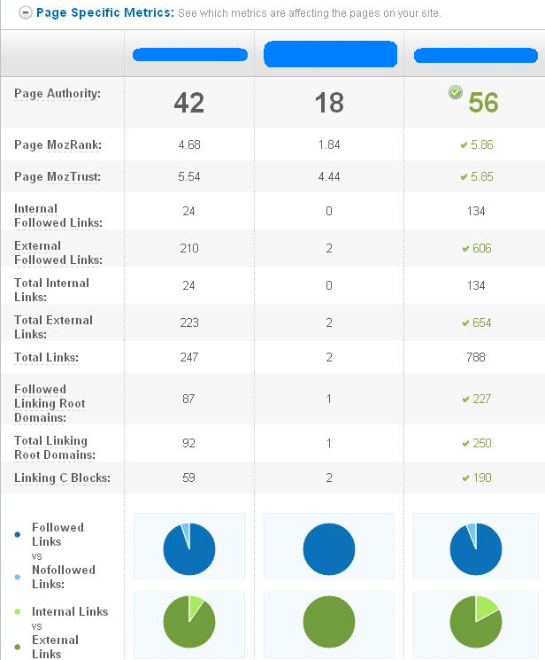 Table showing domains, number of links, and linked pages