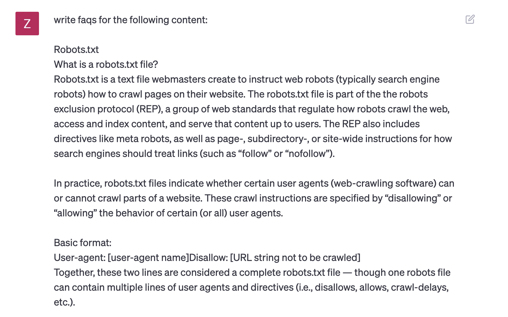 Another task that leverages ChatGPT’s summarization capabilities is the creation of frequently asked questions (FAQs).