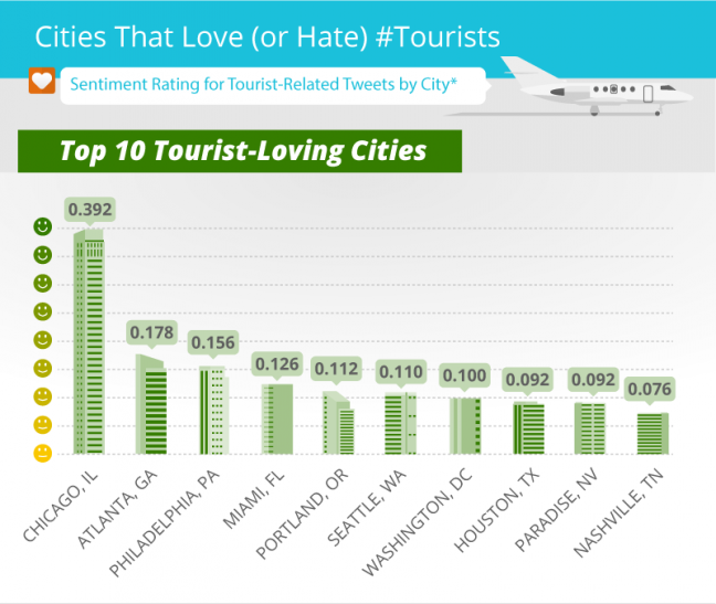 Stratos Jet Charters’ Talking Tourists, which combined social media data with rankings, is a great example. For this campaign, we gathered over 37,000 tweets to determine which places were the most and least friendly to tourists.